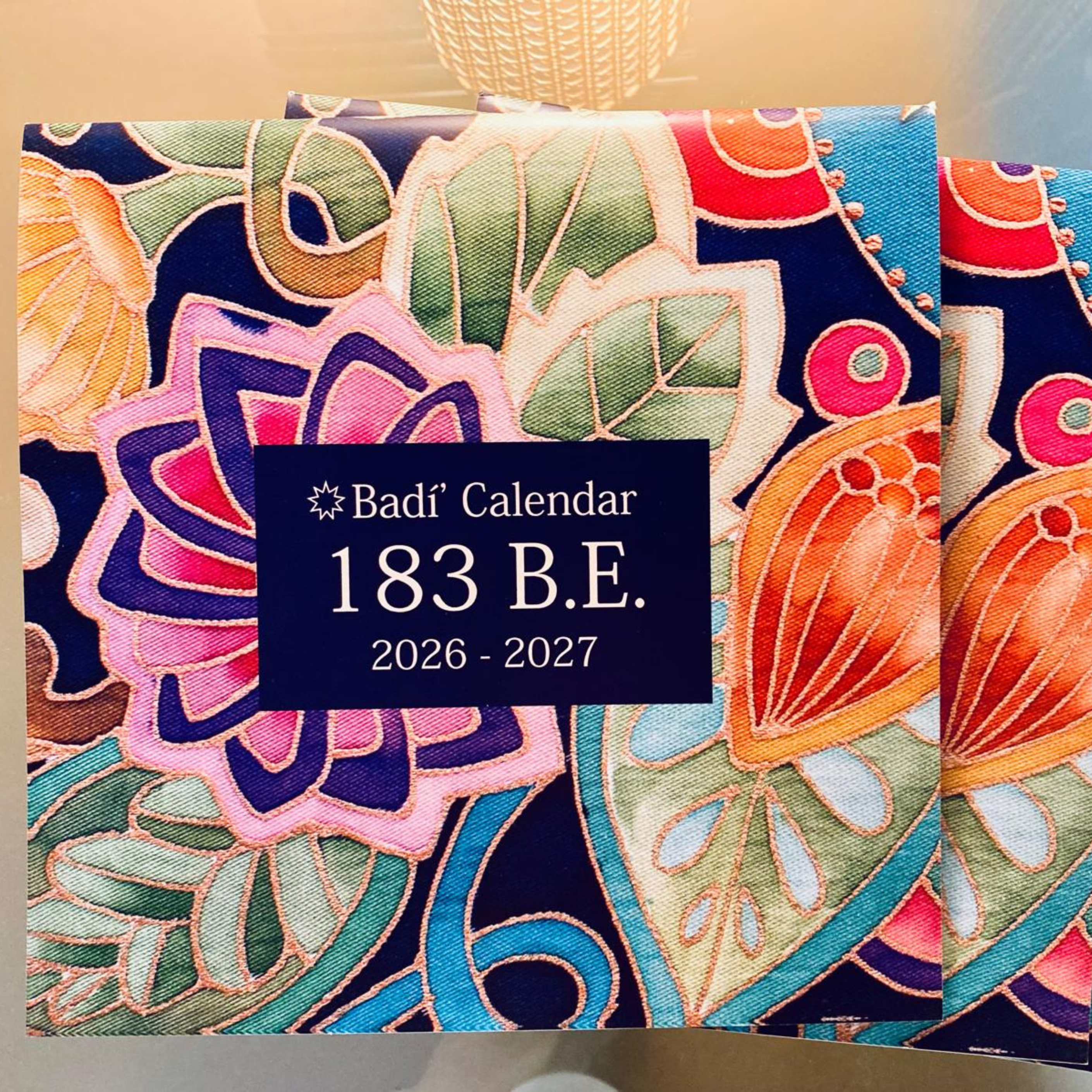 Limited Edition (100 copies) – Badí’ Calendar featuring a 19-day, 19-month layout overlaid with Gregorian dates. This calendar spans from Naw-Rúz 2026 to Naw-Rúz 2027, highlighting Bahá’í Holy Days and other significant periods throughout the year.
